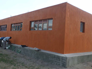 Two-story school building complete with classrooms, offices, and dorm rooms (CARE Uganda Education Centre)
